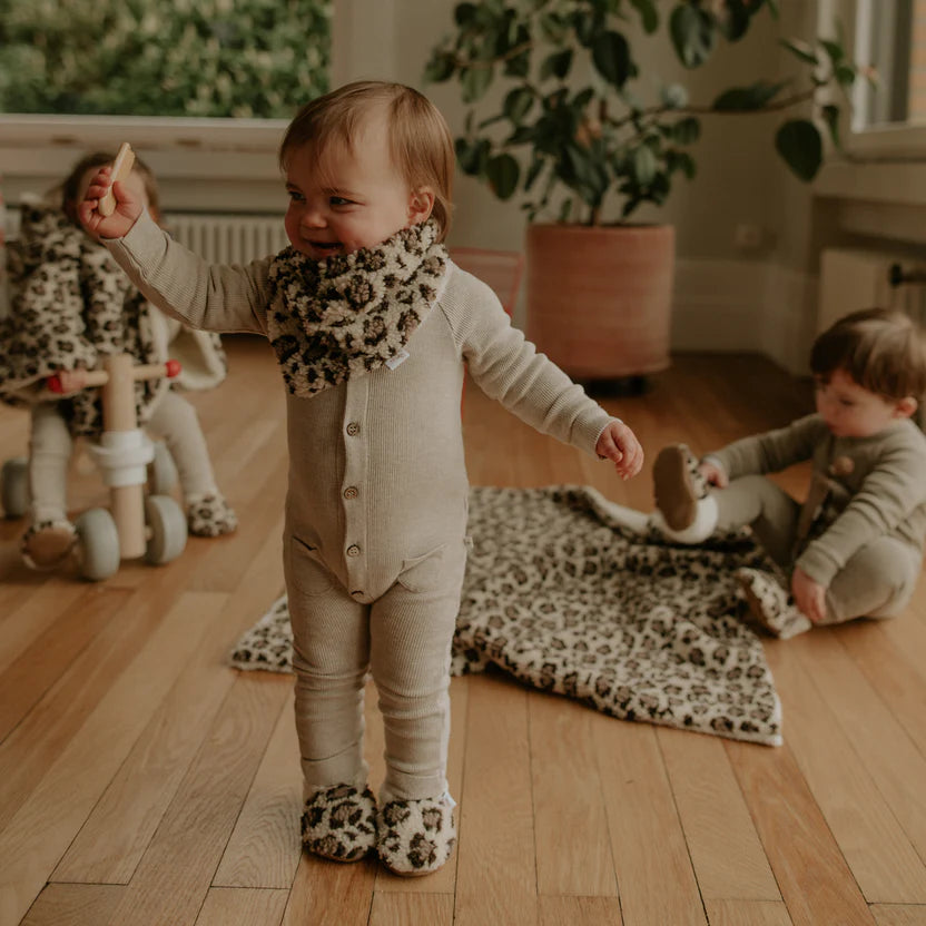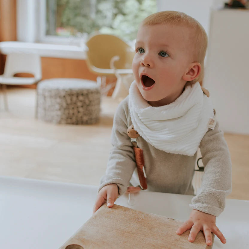 Cache-cou bébé réversible en velours écru – Fait main en France