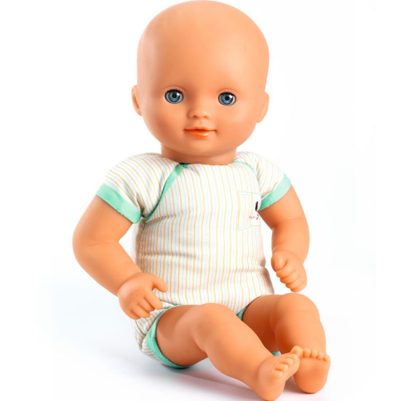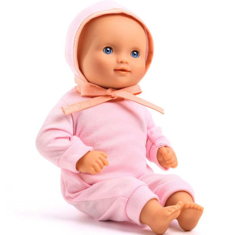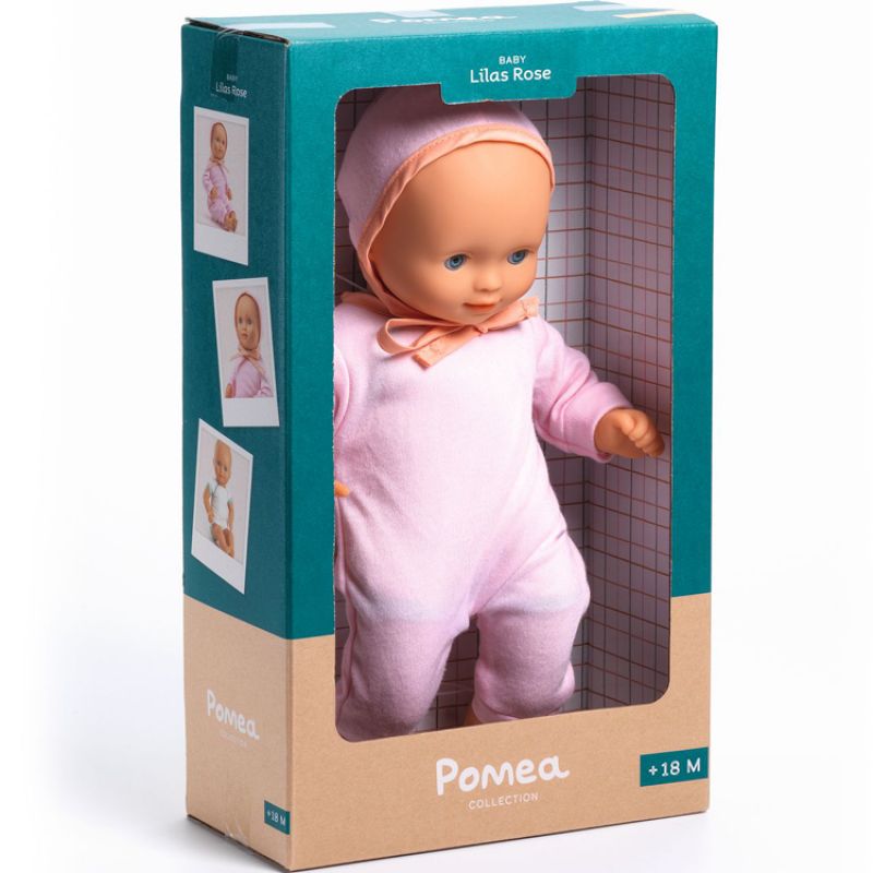 Avec ses grands yeux bleus et toute de rose vêtue, Baby Lilas Rose est une poupée pour les enfants dès 18 mois. Elle est légère et sa taille (32 cm) est parfaitement adaptée aux petits bras. Son corps souple est imprimé d'un joli "body" et permet de la positionner comme un vrai bébé. Son visage, ses bras et ses jambes sont en vinyle très doux, agréable au toucher. Avec ses yeux dormeurs, elle s'endort quand on la couche sur le dos. Ce poupon est habillé d'un pyjama et d'un béguin bi-matière en jersey et en popeline.
