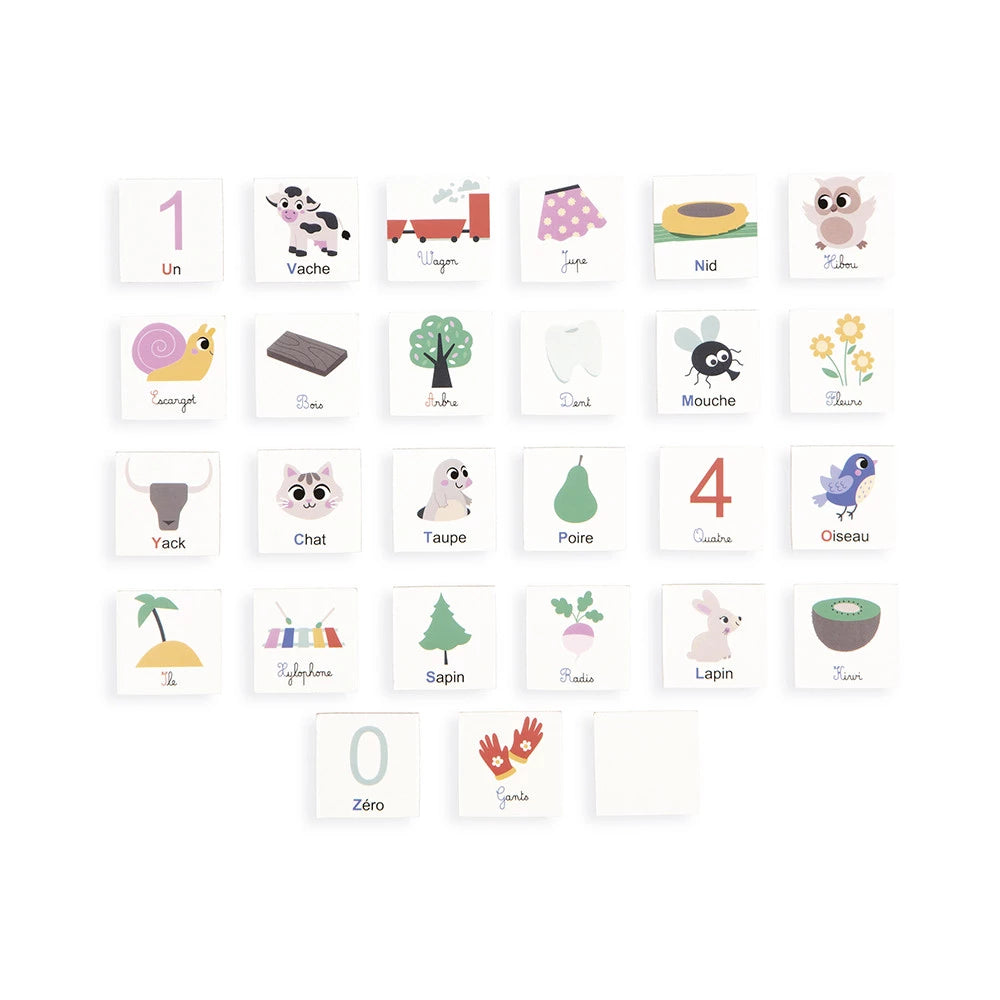 Un jeu éducatif dédié à l’apprentissage de l’écriture, sous forme de chenille ! Adapté aux enfants dès l’âge de 4 ans, il permet d’apprendre l’alphabet ainsi que les 3 typographies utilisées à l’école (écriture scripte majuscule, écriture scripte minuscule et écriture cursive). Pour être un as des lettres, le jeu se compose de : 6 planches (dont 1 avec surface effaçable au verso pour s’exercer), 1 feutre effaçable à sec, 78 lettres (chacune des 26 lettres de l’alphabet dans 3 types d’écriture), 26 cartes modèles illustrées. Créé en collaboration avec une psychomotricienne spécialisée dans l’apprentissage de l’écriture, ce jeu pédagogique propose plusieurs niveaux de difficulté. D’abord, on apprend à reconnaitre les lettres et à les reproduire. Puis, on assemble les planches pour agrandir la chenille et disposer toujours plus de lettres. On peut même écrire des mots simples, et s’aider des cartes illustrées pour identifier la prononciation de chaque lettre. Accompagnés d’un adulte ou en toute autonomie, les enfants progressent à leur rythme dans l’univers des lettres ! Ce jeu éducatif pour apprendre à écrire est composé de bois et de carton certifié FSC™. Il fait partie de la gamme pédagogique Janod, développée en collaboration avec des experts de la petite enfance afin de coller au mieux aux apprentissages et aux programmes de chaque niveau.