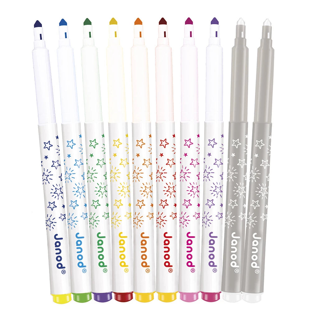 C’est magique ! Adaptés aux enfants à partir de 3 ans, ces 10 feutres magiques offrent une palette de couleurs lumineuses, avec une particularité qui va émerveiller les petits, pour de fabuleux dessins. Ils sont idéals pour les petits artistes qui aiment ajouter des surprises à leurs créations ! Ce pack de feutres magiques se compose de 8 feutres de couleur (bleu foncé, bleu clair, vert, jaune, orange, rouge, rose, violet) et de 2 feutres révélateurs. Une fois le dessin tracé ou colorié, l’encre change de couleur instantanément avec le passage du feutre révélateur ! En écrivant comme en dessinant, tout à l’air encore plus magique ! Grâce à leur pointe conique, ils permettent de colorier avec précision ou en largeur, selon les envies. Ces feutres magiques vous garantissent des heures de créativité et de surprise ! On adore la boîte réutilisable, pour ranger facilement les feutres après chaque session de coloriage. Quand ils dessinent, les enfants développent leur motricité fine et leur créativité. En progressant, ils ajoutent des détails et adorent les feutres avec un côté « Waouh » ! Ce kit de 10 feutres magiques fait partie de notre gamme « Colo », une collection complète d’articles de coloriage, pour des moments créatifs hauts en couleur dès le plus jeune âge.
