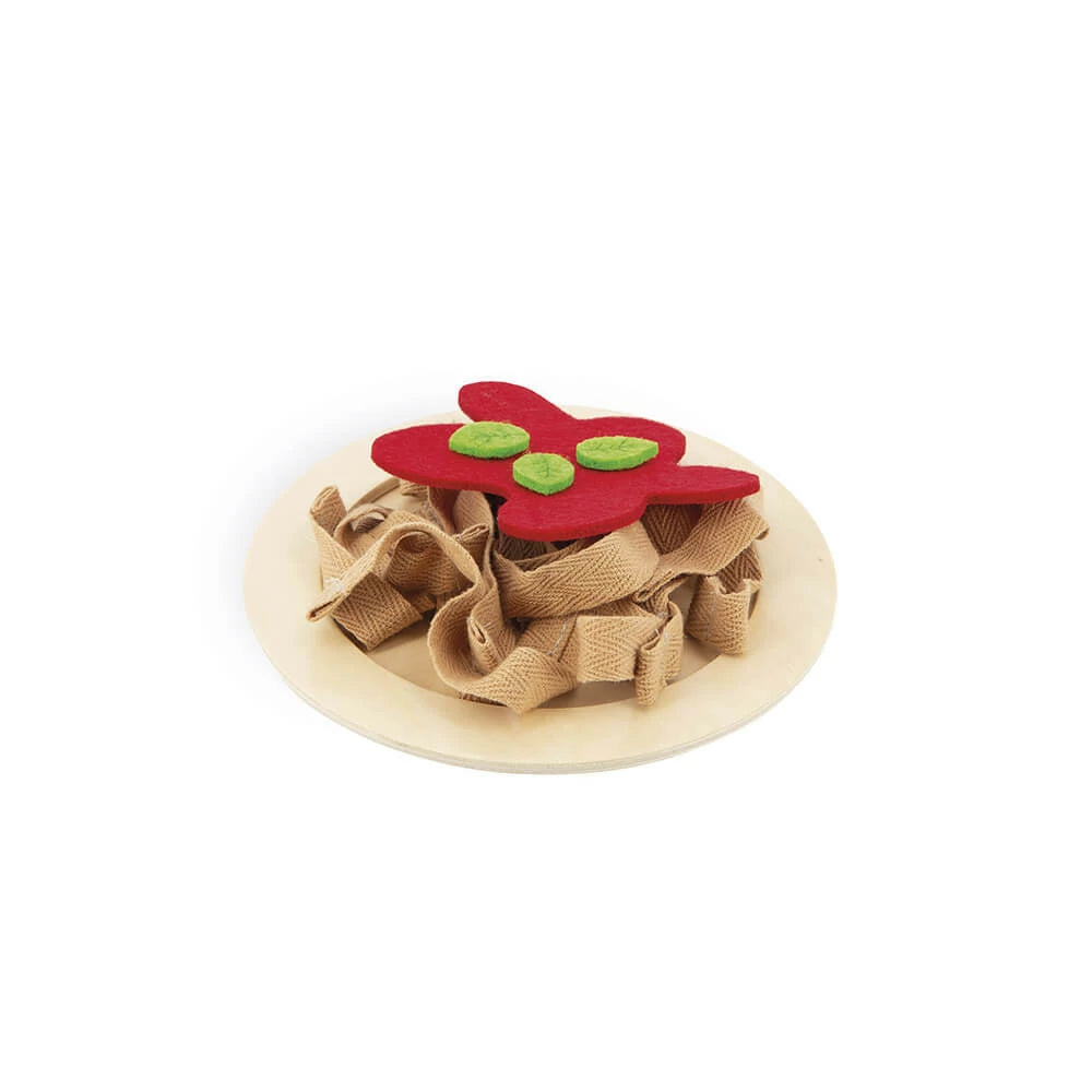Mamma mia ! Quelle merveilleuse idée pour les gourmands, ce pasta kit ! Vous avez des enfants qui adorent les pâtes, qui s'amusent toujours à cuisiner et qui ont beaucoup d'imagination ? Avec ce set Pasta Mix, ils seront comblés ! Voici tout le nécessaire pour imaginer les meilleures recettes de pâtes à l'italienne ou à la française, elles seront assurément délicieuses. Pour créer leurs spécialités, les enfants dès 3 ans pourront utiliser les nombreux accessoires compris dans ce jeu : 20 farfalles plus vraies que nature, 4 gros raviolis, 6 feuilles de basilic, 5 champignons et 1 sauce tomate, le tout en feutrine. Les 10 tagliatelles, elles, sont en ruban plat imitant parfaitement la couleur de ces excellentes pâtes ! Pour agrémenter les plats des mini cuistots, rien de mieux que le parmesan, sa râpe et quelques tomates en bois. On sert le tout dans une assiette à l'aide de la cuillère, de la passoire et de la casserole en métal incluses. Pratique, les pâtes se rangent facilement dans les deux jolis paquets en carton ! Ce jouet d'imitation est parfait en complément de cuisine ou de jeux de dinettes. Il favorise l'imagination et le partage avec les amis et la famille. La peinture de décor est à l'eau. Ce produit est composé de matériaux certifiés FSC® et de matériaux contrôlés.