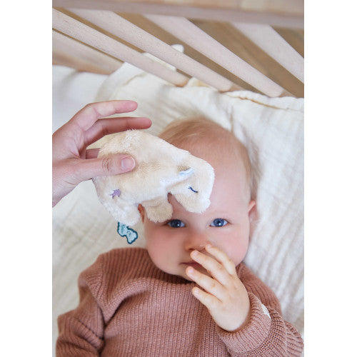 Soulagez les petites douleurs de bébé avec cette jolie poche de froid ours blanc ! Cadeau de naissance utile et adorable, elle permet d’apaiser les petits bobos grâce à son effet froid ciblé. Facile d’utilisation, il suffit d’insérer des glaçons ou la poche de froid amovible fournie à l’intérieur de la peluche. Le pochon est garni de billes en argile et se place au congélateur, 2 heures au minimum. Il contient également des brins de lavande, pour un effet apaisant et une odeur rassurante pour les petits. Grâce à son format compact (13x10 cm), cette poche calmante en forme d’ourson est idéale pour diverses applications : soulager les poussées dentaires douloureuses, les maux de tête, les bosses et autres petits bobos. Rien de mieux qu’un beau petit ours tout doux pour s’apaiser et se détendre quand on est inconfortable ! Les oreilles de la peluche sont ornées d’un bel imprimé « Danse des vagues », et son ventre de broderies poissons colorées, agréables au toucher. Ceci évoque la sérénité des profondeurs marines. La poche de froid ours se compose de fourrure synthétique, de micro-velours et de tissu éponge au dos, pour une meilleure application de son effet rafraichissant. Vous pouvez laver la peluche Kaloo en machine à 30° après retrait de la poche de froid. Limitez son application à 15 minutes : la peau de bébé est sensible. Ne pas chauffer le pochon inclus.