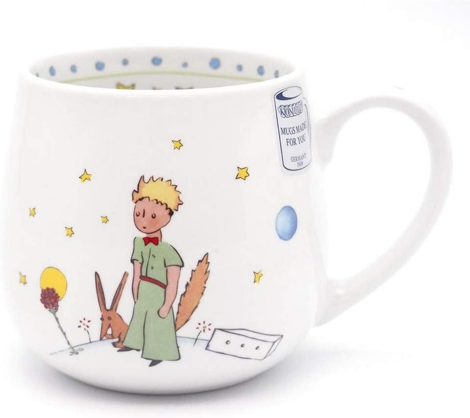 Mug en porcelaine fine Le Petit Prince. Son décor ne manquera pas d'inspirer les pensées de tous les fans du célèbre personnage de livres pour enfants et de leur donner le sourire. On peut y lire une invitation de Saint Exupéry à retrouver l'enfant en soi, car « toutes les grandes personnes ont d'abord été des enfants.