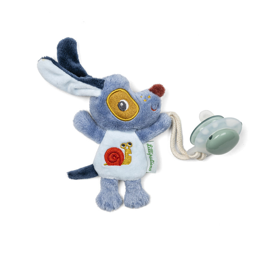 Bonne nuit, petit Jules ! Avec cette petite peluche, finit la tétine perdue au milieu de la nuit. Grâce à ce joli chien phosphorescent, bébé ou vous-même n’aurez aucun mal à retrouver les indispensables, même dans le noir : sucette, doudou … Plus qu’un attache-tétine, cette peluche chien peut aussi être utilisée comme doudou pour rassurer bébé tout au long de la journée. C’est également une extension qui lui permet d’attraper sa tétine plus facilement. Et quand vient la nuit, son petit ventre rond et ses longues oreilles brillent d’une douce lueur apaisante. Dans son format compact de 12 x 12 cm, ce chien en peluche est un concentré de douceur avec des teintes apaisantes et une jolie petite bouille ! Son attache en silicone est sûre pour les petits, dès la naissance. C’est le petit accessoire doux et malin qu’il vous fallait, ou qui fera plaisir aux parents, pour des nuits plus paisibles ! Vous pouvez laver la peluche phosphorescente Lilliputiens en machine à 30°. Au dodo les loulous !