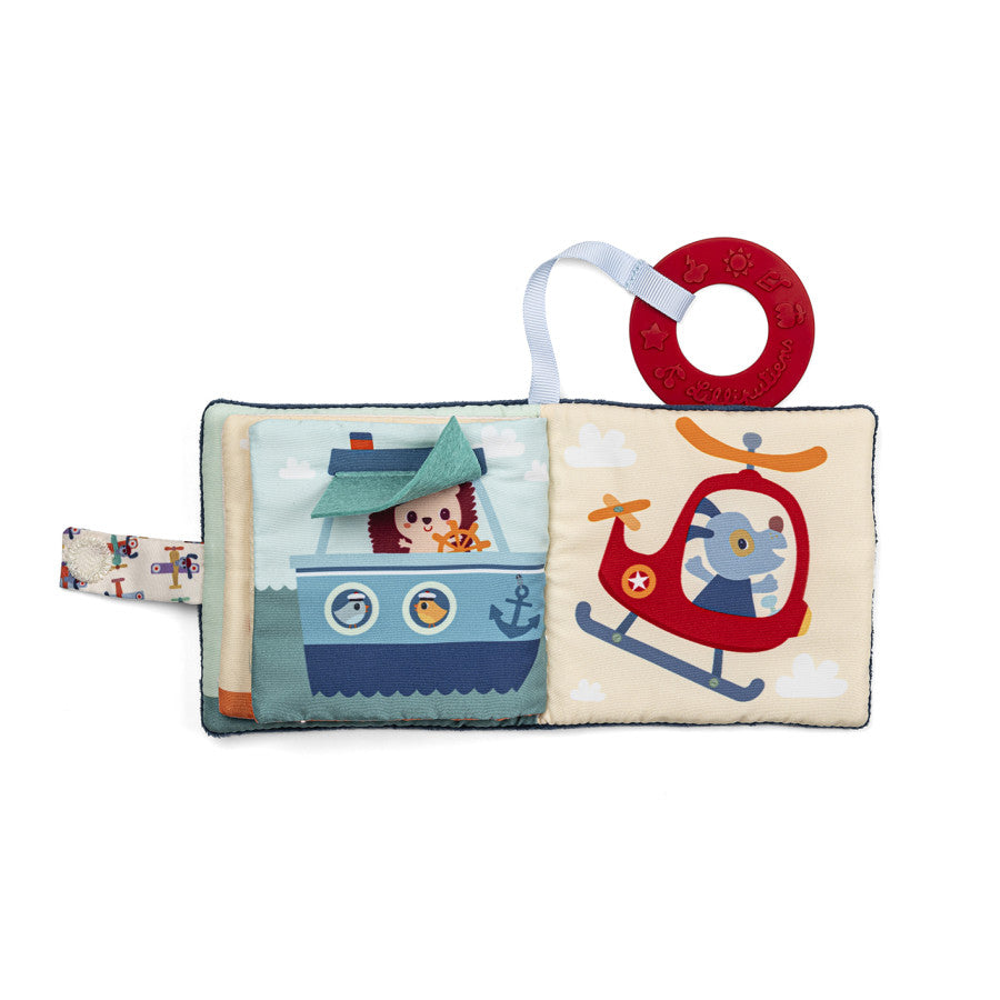 Tout roule dans cet imagier ! Adapté aux bébés dès l'âge de 6 mois, l'imagier Jules le chien est conçu pour divertir et éveiller les sens des petits. Avec son format compact de 10 x 3 x 10 cm, ce livre en tissu est tout doux et raconte une histoire de bolides, idéale pour apprendre les différents moyens de transport et pour des moments de complicité entre parents et enfants. L'histoire de cet imagier met en scène Jules et ses amis, tous à bord d’un véhicule : sur la route ou les petits chemins, sur la mer comme dans les airs … Ce récit illustré est parfait pour éveiller l'imagination des tout-petits et les transporter dans un monde de surprises et de découvertes. Vous et votre enfant passerez d'agréables moments en explorant ensemble toutes les surprises que ce livre a à offrir. Grâce à cet imagier, bébé développe non seulement sa vue et sa motricité, mais aussi sa réflexion et son imagination. Les pages colorées et les textures agréables stimulent les sens, tandis que les premières histoires favorisent le développement du langage. Les moments partagés autour de ce livre sont autant d'occasions de créer des souvenirs inoubliables. Le petit plus de cet imagier est l'anneau de dentition rouge qui lui est accroché. Avec ses motifs en relief, il permet d'apaiser les gencives de bébé lorsque ses dents commencent à percer. Ainsi, votre tout-petit peut parcourir son livre ou mordiller l'anneau en toute sécurité. L'Imagier Jules le chien est facile à emporter partout, et peut être utilisé pour divertir bébé à la maison ou en sortie. Si vous êtes à la recherche d'un cadeau pour une naissance, cet imagier en tissu Lilliputiens fera sensation. Sa qualité, son design et ses fonctionnalités en font un choix parfait pour émerveiller les bouts de chou et leurs parents. En route !