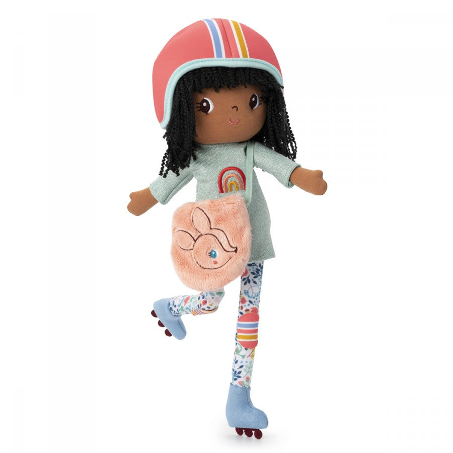 Liza, la poupée en tissu qui fait du roller ! Idéale pour les enfants dès 2 ans, cette poupée Lilliputiens mesure 43 cm. C'est une amie super branchée, pensée pour accueillir les câlins et les histoires des petits. Elle arbore une multitude de détails et de textures, un look travaillé aussi agréable à toucher qu'à regarder. On la remarque avec son joli casque rose, indispensable pour rouler en toute sécurité. Son collant à motif et ses genouillères donne une touche de peps à sa tenue, et son sac à main duveteux est très utile pour transporter tous ses essentiels pour la journée : des en-cas et une gourde, pour reprendre des forces après une session de roller énergique. La touche Lilliputiens : la frimousse de Stella le faon brodée sur l'avant du sac. Les enfants peuvent s'amuser à retirer les accessoires de la poupée Liza, car le casque et le sac sont amovibles ! Jouer à la poupée favorise le développement de l'empathie chez les petits, mais aussi leur imagination. Liza est impatiente de devenir la meilleure amie de son petit propriétaire ! Vous pouvez laver cette poupée en tissu et tout ses accessoires en machine à 30°. C'est une copine à offrir en toute occasion !