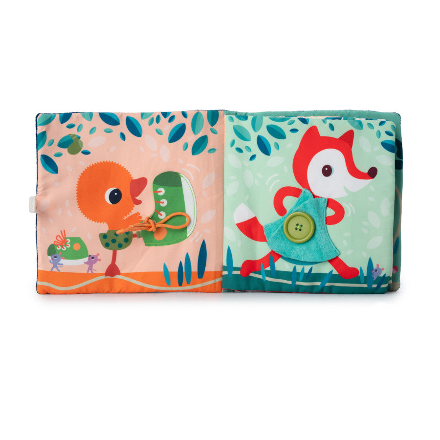 Apprendre à s'habiller … Avec un livre ? C'est possible, et c'est même très amusant pour les enfants dès l'âge de 18 mois avec ce livre d'activités en tissu ! Au fil des pages, des animaux amusants se déshabillent à l'aide de différentes fermetures pour encourager l'autonomie de vos petits : fermeture éclair, lacet, bouton, boucle et autre bouton pression sont accessibles pour s'entrainer à s'habiller. Tout le long du récit, les petites mains s'exercent au service de la motricité des petits. Ce livre en tissu est aussi un moyen très simple d'occuper et de divertir votre bambin pour un moment de calme. Sur la couverture, c'est Jules le chien qui ouvre la danse avec son joli ciré jaune ! Mais d’ailleurs, pourquoi toute cette joyeuse bande retire t'elle ses vêtements, et où vont-ils ? Ils courent se baigner, bien-sûr ! Une fois dans l'étang, nos amis n'ont que faire de leurs vêtements. Attention aux petites souris : ces petites coquines ont un faible pour les vêtements abandonnés et adorent s'en emparer ! En plus d'être éducatif, ce livre Lilliputiens conte une histoire amusante qui va captiver les tout-petits. Le format carré 20x20 cm et la variété des fermetures proposées font de ce livre d'activités un vrai jouet au service de la dextérité et de l'imagination. Vous pouvez laver ce livre en tissu en machine à 30°.