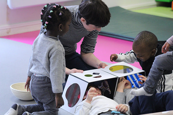 Une jolie partie de cache-cache se met en place grâce à ce petit livre accordéon. Tout en transparence et en couleur, il invite parents et enfants à un éveil complice en jouant avec les formes et la lumière. Un livre qui se plie et se déplie pour faire varier les expériences !