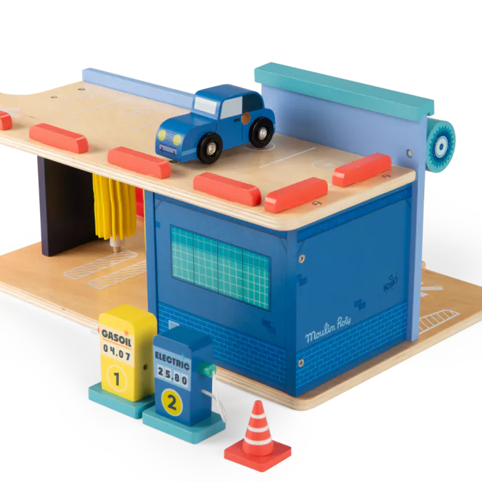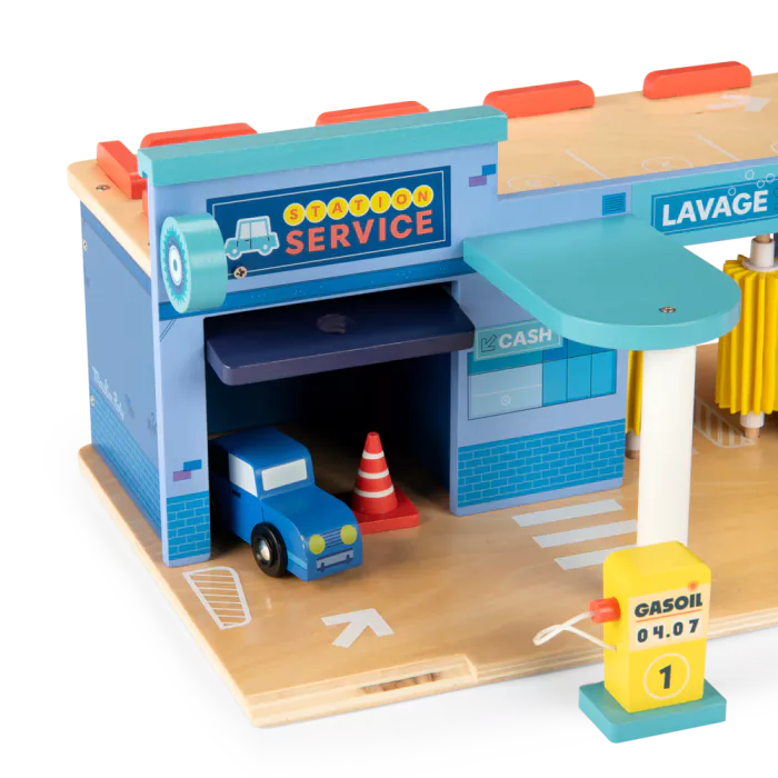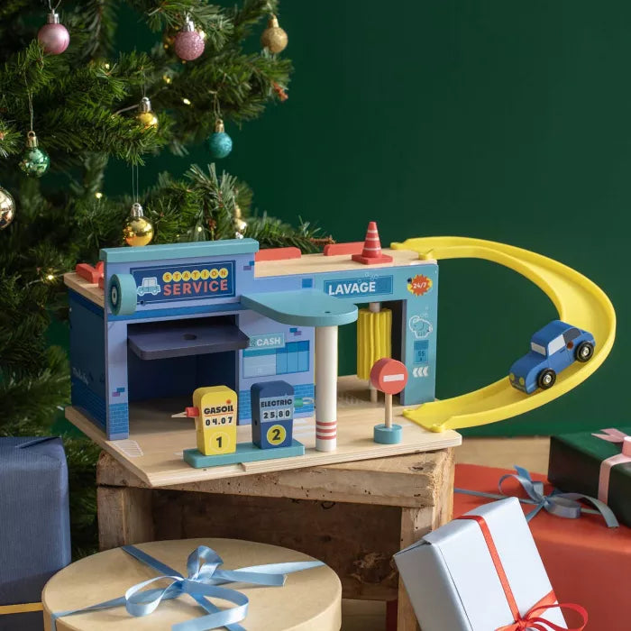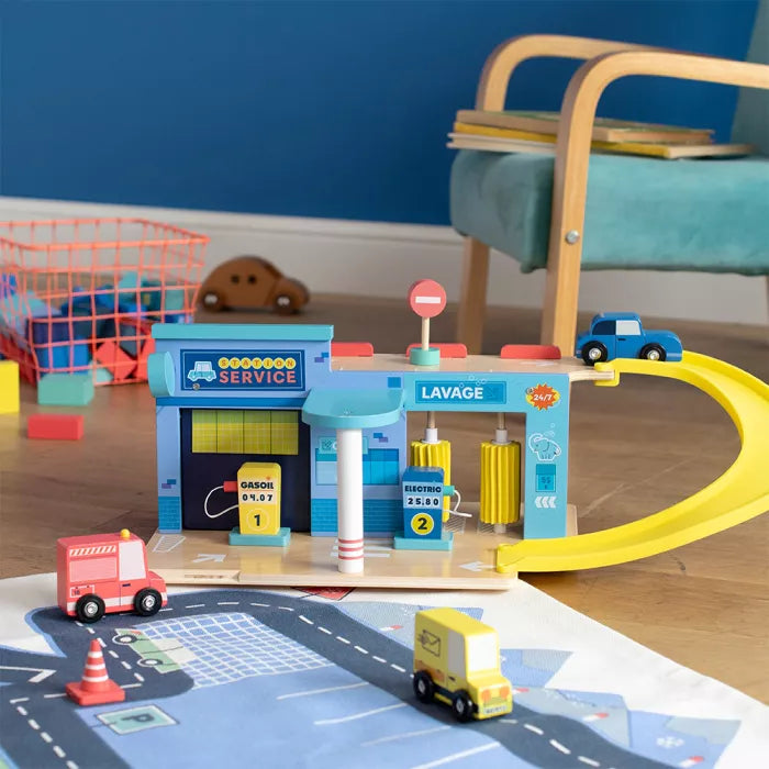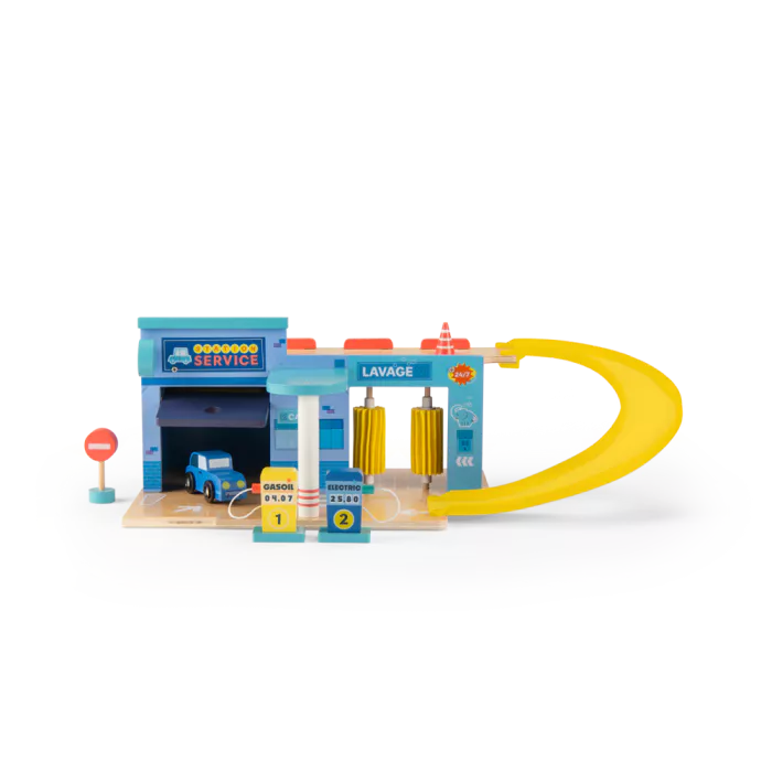 Faire le plein, laver les voitures, réparer les pannes, les petits s'inventeront d'incroyables histoires avec la station-service en bois. Cette station au look rétro comprend 1 voiture, 1 rampe, 2 pompes, 1 box...pour des heures de jeu en perspective !