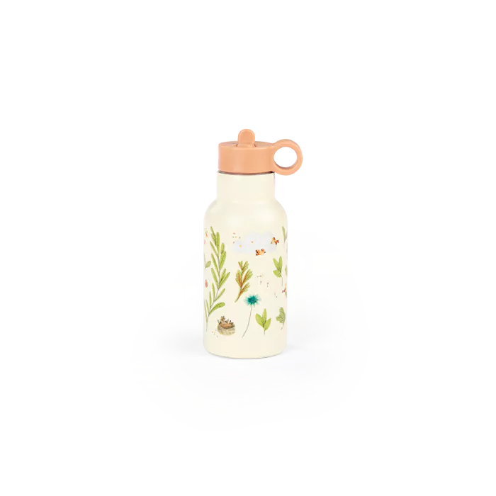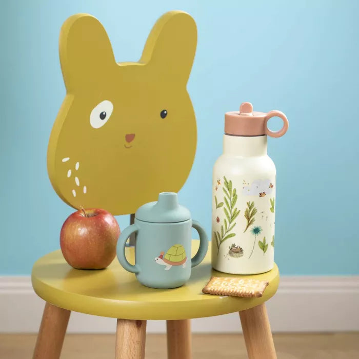 Gourde tendrement illustrée des personnages de la collection Trois petits lapins. Compacte et munie d’un mousqueton, elle se glissera facilement dans un sac à dos pour l’emmener partout !