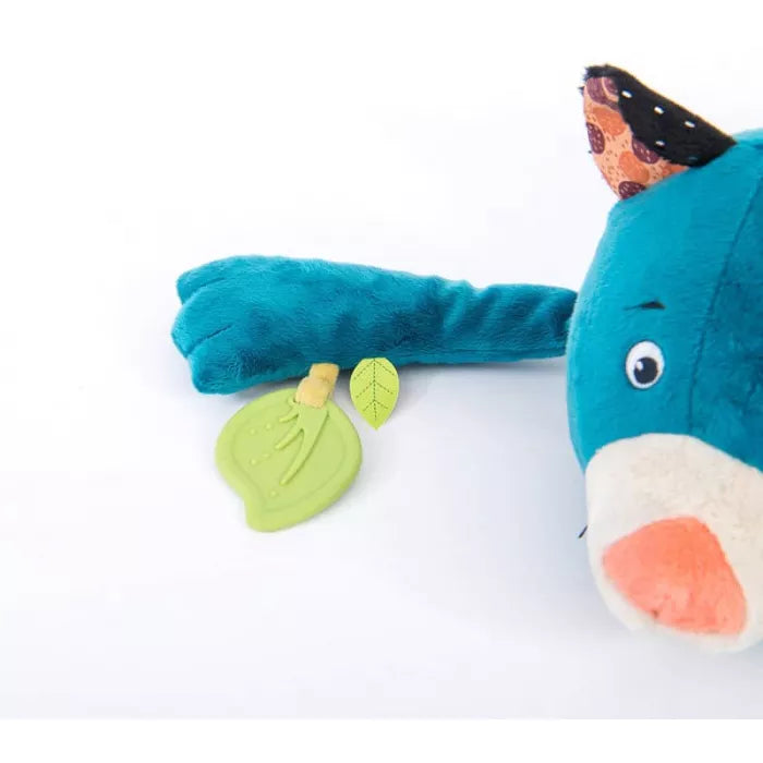 Grande panthère d'activités, accompagnée par son tout-petit, le caméléon et le papillon. Elle comporte un prisme, une spatule dentaire, un miroir, un cordon avec des perles et des petits gris-gris… Son corps est doux et moelleux et peut servir de coussin