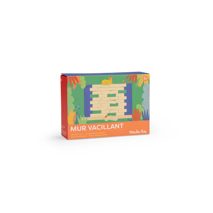 Défiez-vous pour retirer le plus de briques possible sans faire tomber Léopard ! Le mur s'effondre, la partie est finie, Léopard se réveille ! 40 briques en bois, 1 baguette et un sac de rangement inclus. 2 joueurs et +. 3 ans et +