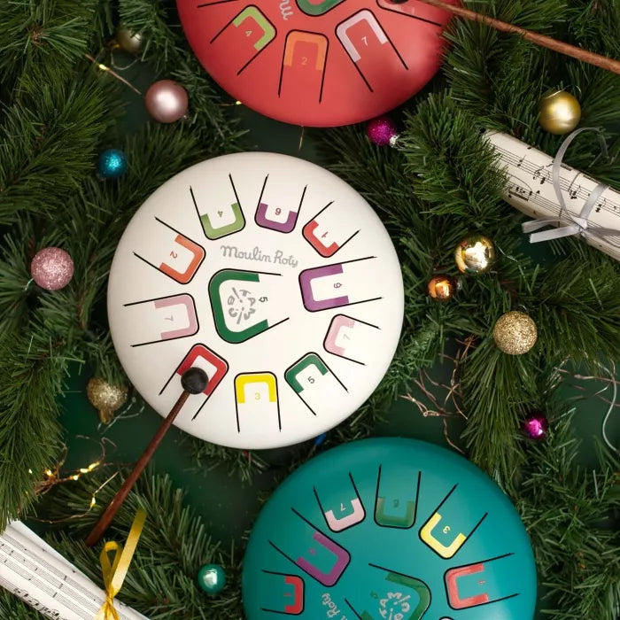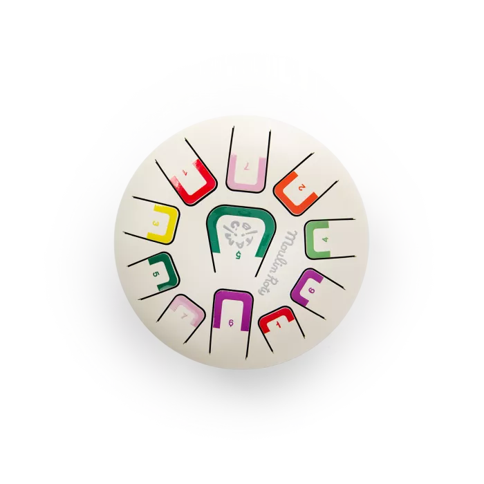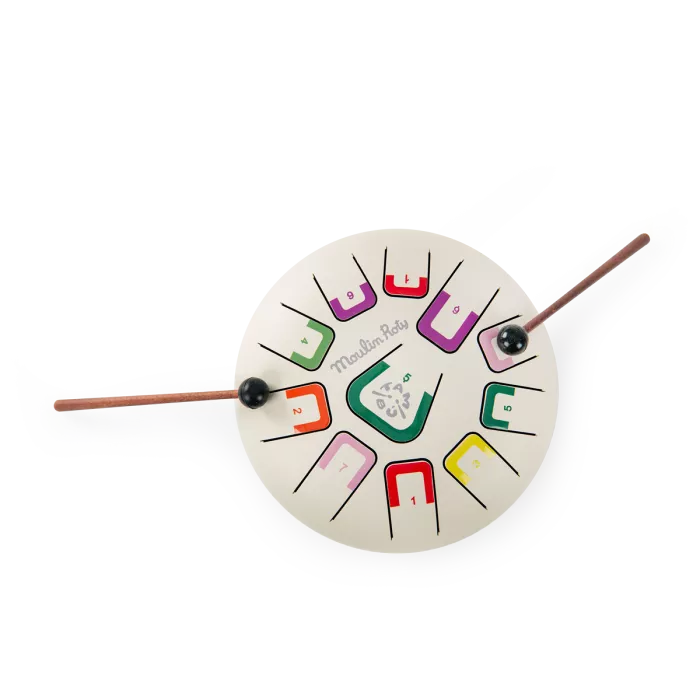 Véritable initiation aux percussions, ce tambour à languettes dispose de 11 notes. Différentes façons de jouer : avec le bout des doigts, les mains ou à l'aide des baguettes incluses. Le tambour est livré avec un livret de mélodies. La baguette et les stickers chiffre sont disponibles en pièces détachées sur commande.