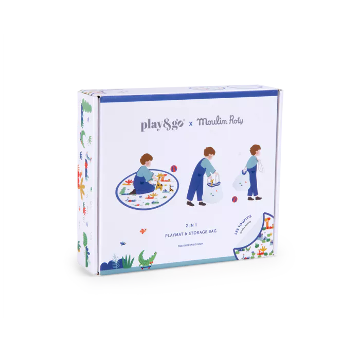 Tapis de jeu en toile 100% coton, aux couleurs et motifs de la collection Les Toupitis. Pratique, il se transforme en sac de rangement à emmener partout avec soi. Il suffit de resserrer ses deux cordons grâce à sa lanière ajustable pour le transporter.