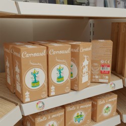 Découvrez notre magnifique carrousel musical en bois, un jouet intemporel qui émerveillera petits et grands. Doté d'un mécanisme manuel de remontée, il vous permettra de profiter de la mélodie envoûtante du célèbre "Le Beau Danube bleu" de Johann Strauss. Il vous suffit de tourner la partie supérieure du carrousel dans le sens des aiguilles d'une montre, et les 3 chevaux élégamment décorés se mettront à tourner gracieusement au rythme de la musique. Fabriqué avec soin à partir de bois de qualité, notre carrousel est non seulement un jouet ludique, mais aussi un bel objet de décoration pour la chambre d'enfant. Nous avons également pris soin de l'environnement en optant pour un packaging en carton kraft sans pelliculage plastique. Offrez un cadeau magique et durable à vos enfants avec ce carrousel musical en bois