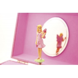 Coffre musical rectangulaire avec mécanisme de remontée manuel au dos. Ce coffre musical est orné d'une illustration représentant 3 petites fées et leurs fleurs de pissenlit. Lors de son ouverture, une petite fée s'anime et tourne au son d’une délicate musique.